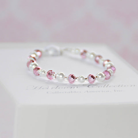 A bit brighter pink for those that want a bit more of a statement. The pink crystal is such a pretty color enhanced with crystal AB and pearls. Rhodium clasp and shipped boxed. 5" size.