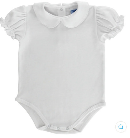 White Knit Onesie, White Trim, Knit Girls Short Sleeve